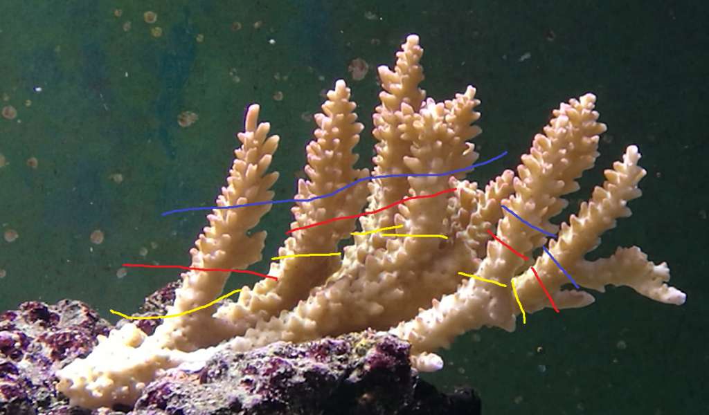 Billederne er af samme koral (3 forskellige naturligvis) det fra siden er mine, jeg ser jo ikke på korallerne oppe fra.