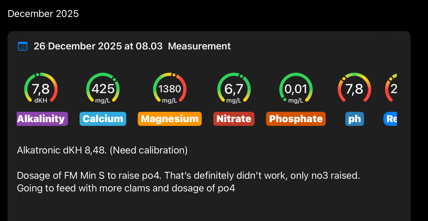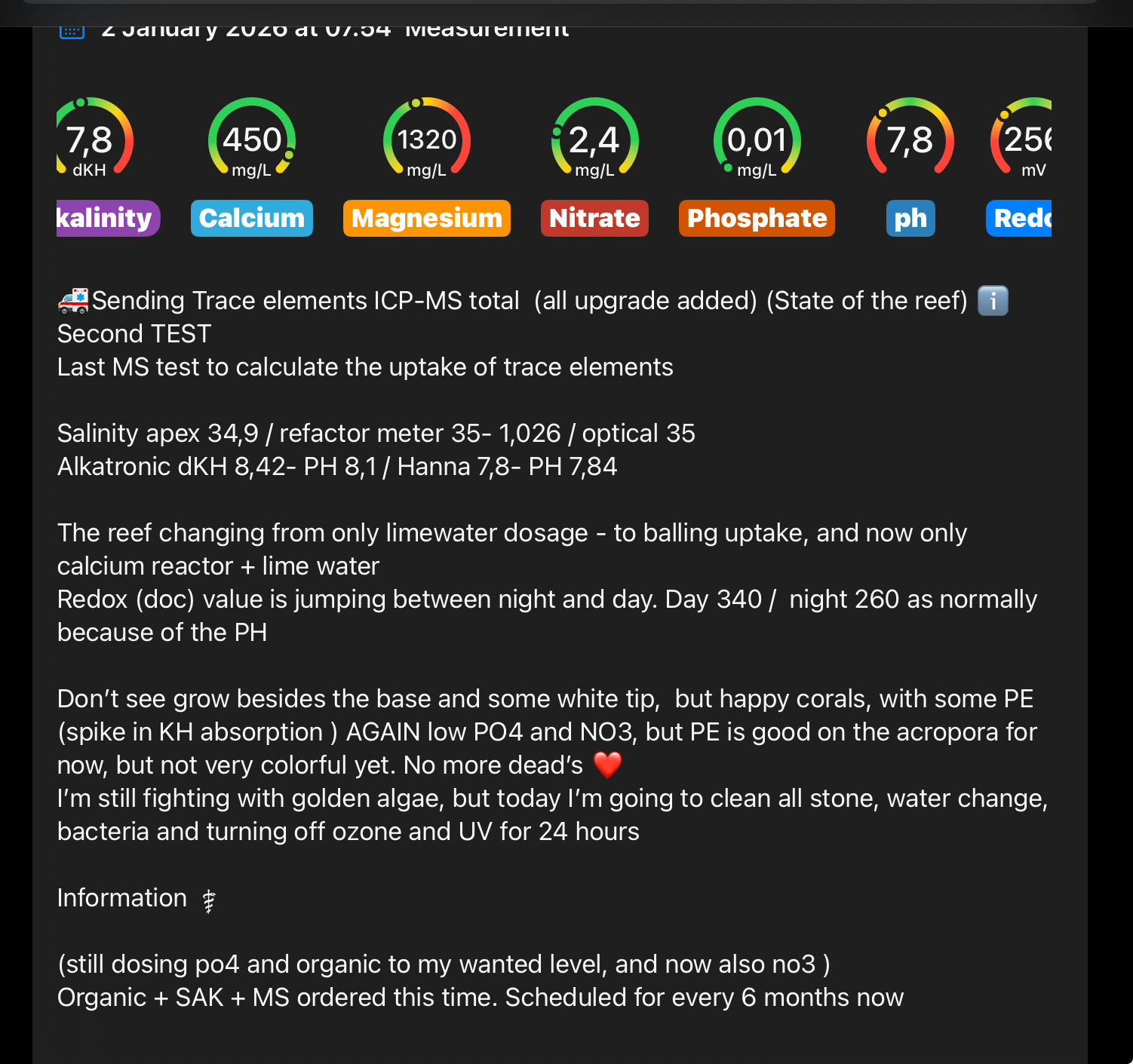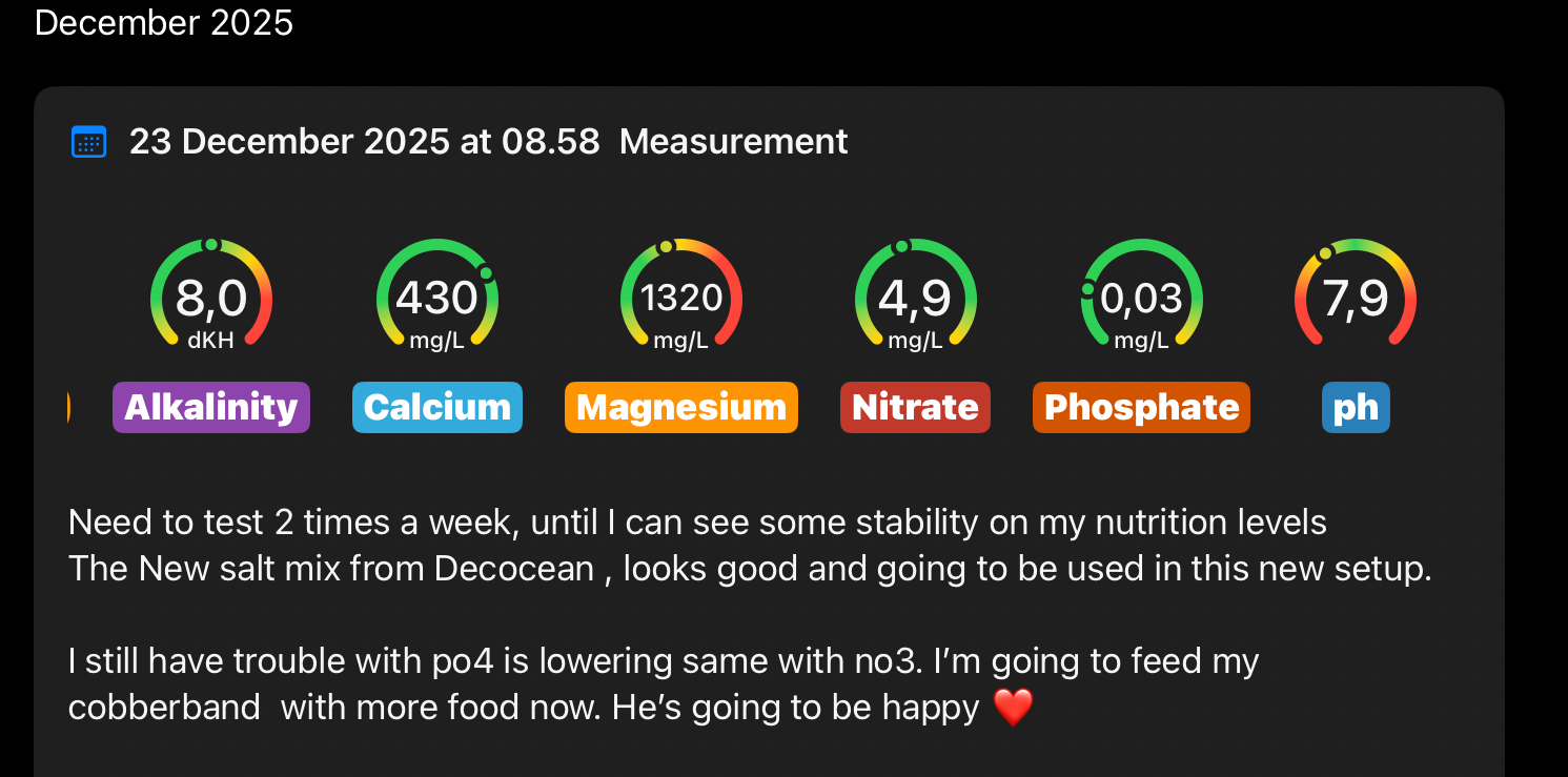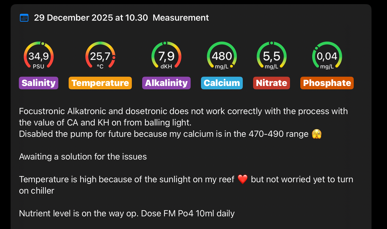 Til det med kalkreaktoren ( forstår mig ikke på det andet)Seniorreefer skrev: man 29. dec 2025 15:15Forbruget er for lille lige nu til at kunne dosere med den. Minium på kalkreaktoren er 3 liter dagligtcrazy seahorse skrev: man 29. dec 2025 15:06 Hvorfor lader du ikke din kalkreaktor klare Kh/Ca delen alene?