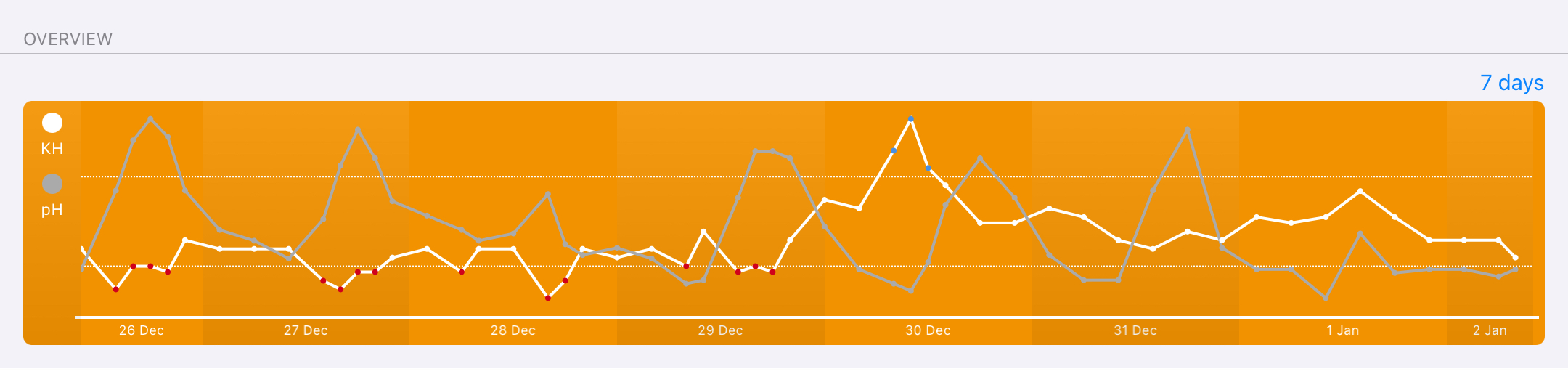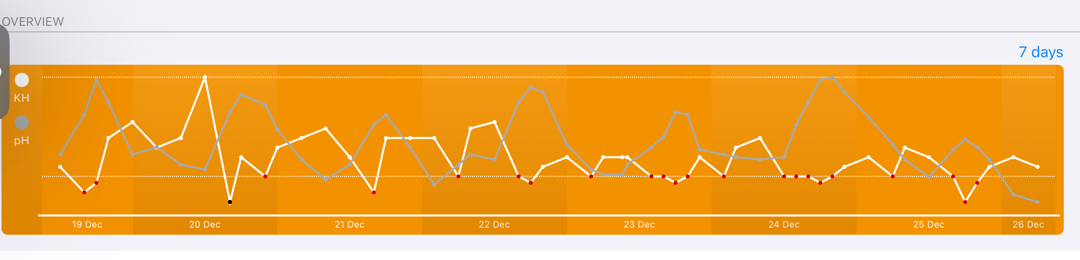 Som i kan se er KH stabiliseret uden Balling dosering, kun kalkvand om natten, bemærk dog den laver PH , men skal da ikke beklage med den kh stabilitet
