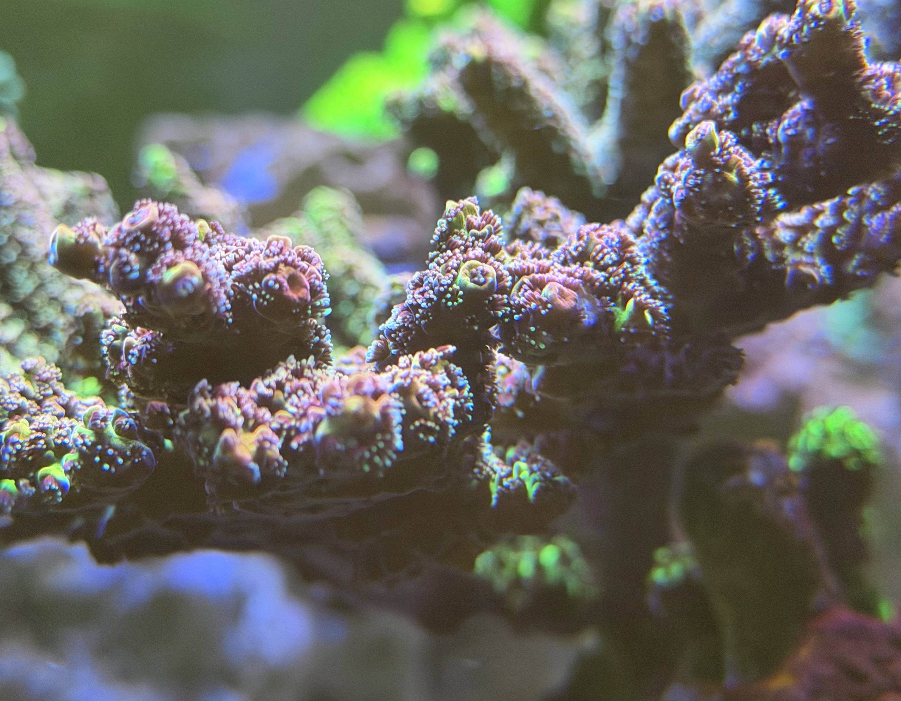 Min Acropora SR Rainbow begynder virkelig at vise farverne frem