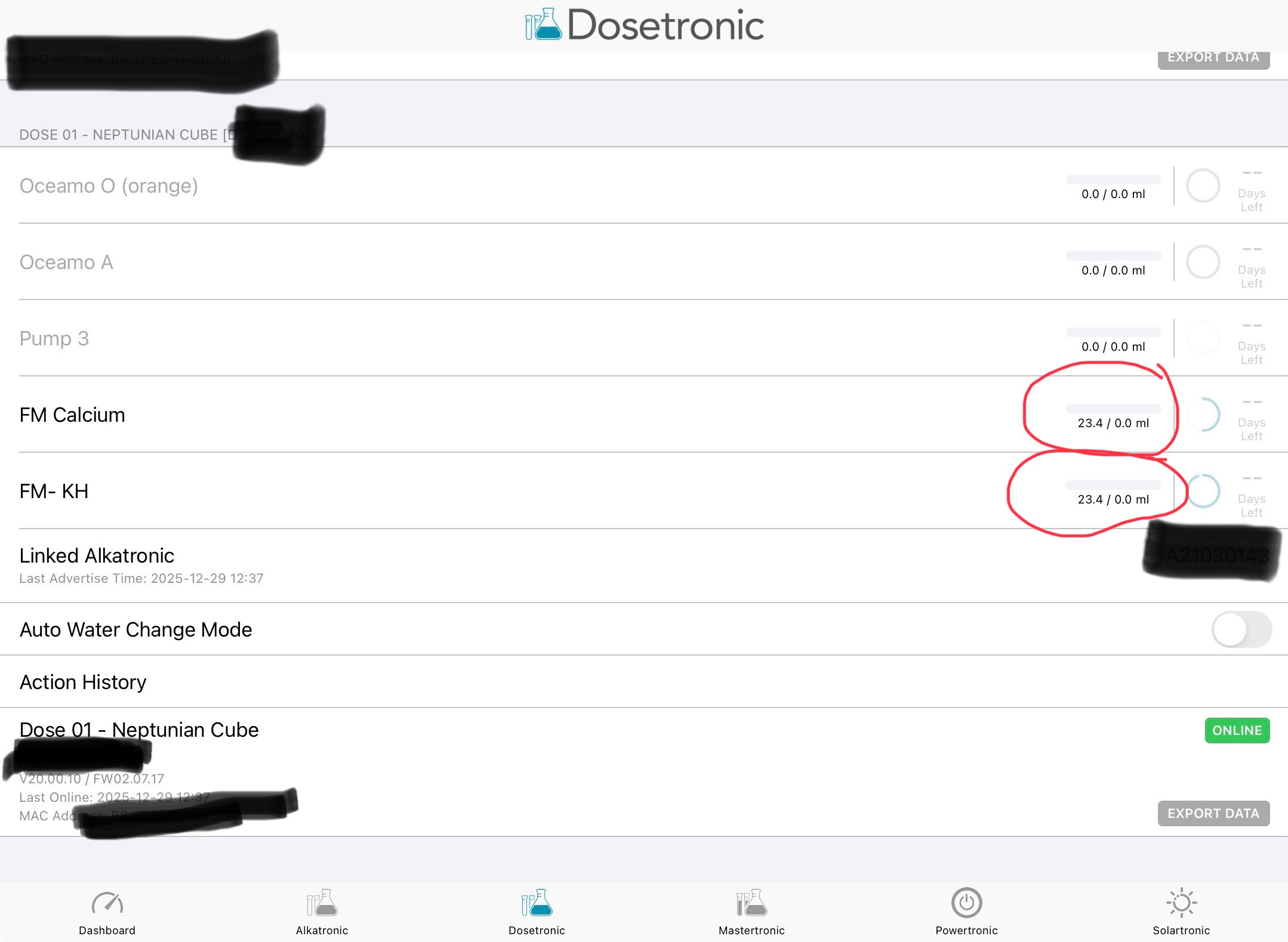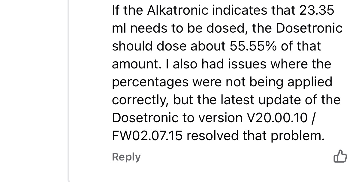 Jeg har opdateret mine dosere og er blevet opdateret til seneste software og Firmware , men den korrigerer ikke korrekt forhold mellem Balling KH og CA.