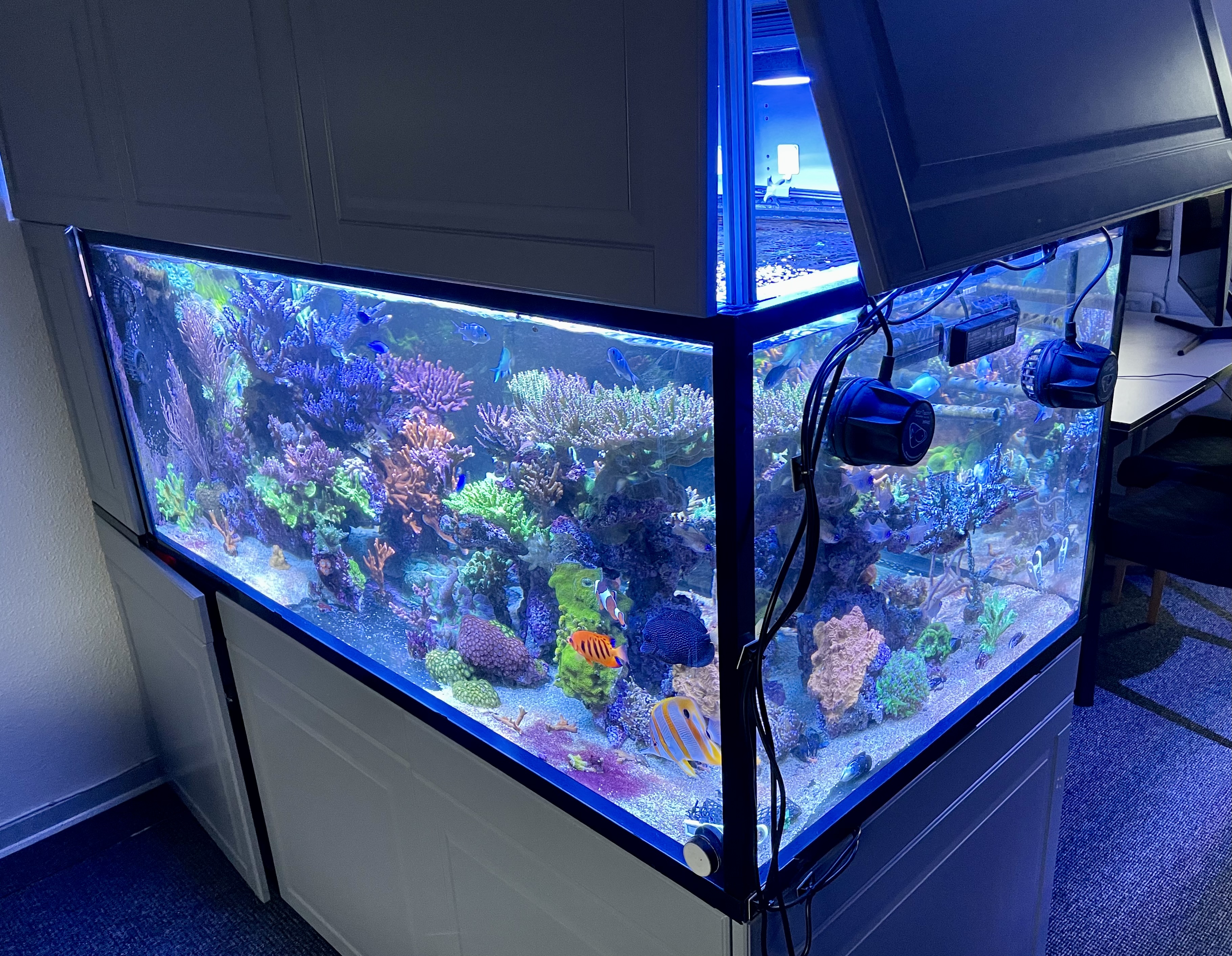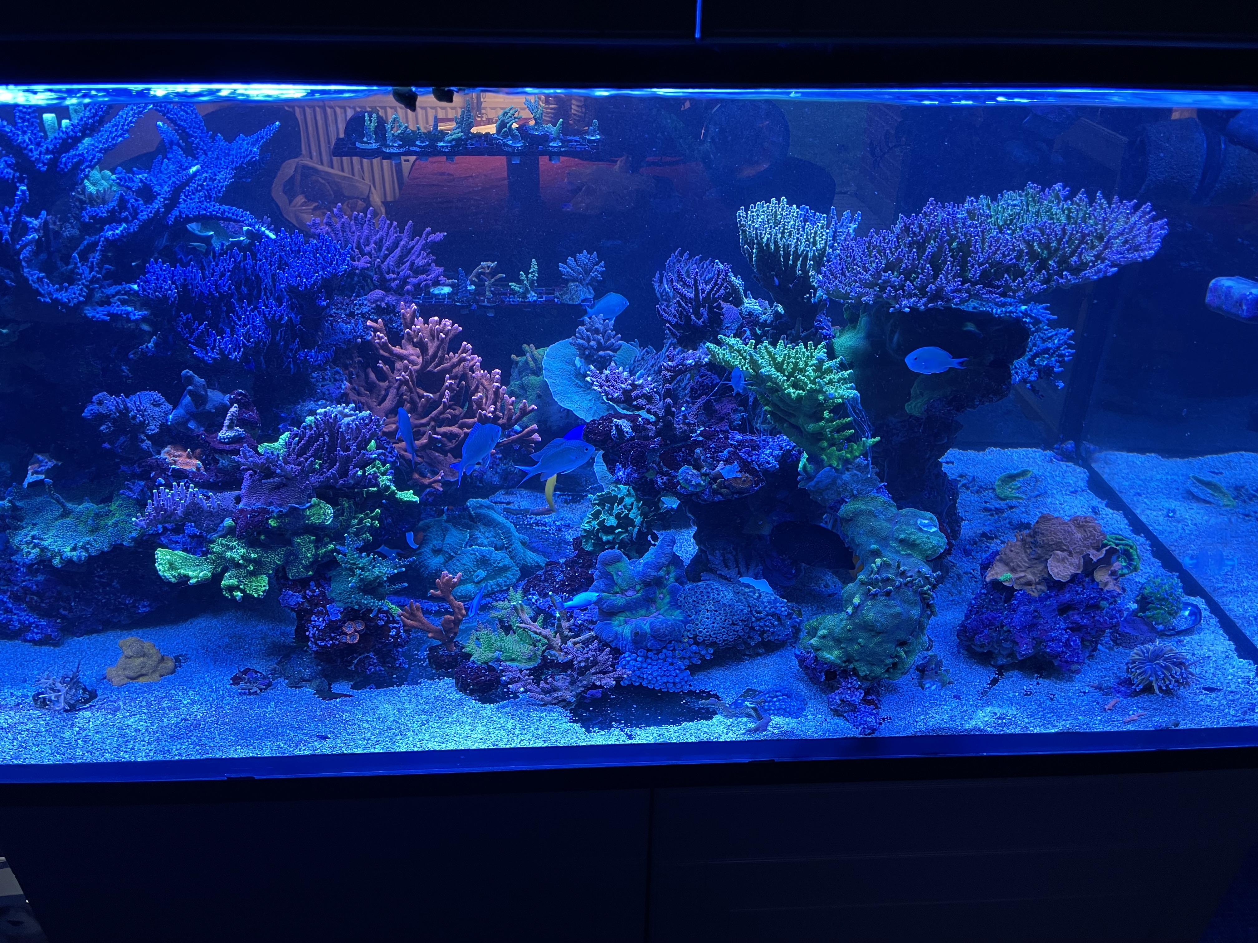 Jeg fodrer og fylder Ro vand på på et akvarie. Et andet er jeg standby på, hvis der opstår problemer. Og i mit eget, bliver der fodret og fyldt Ro vand og sporstoffer på og der er lige et øje på, om kalkreaktoren kører som den skal.