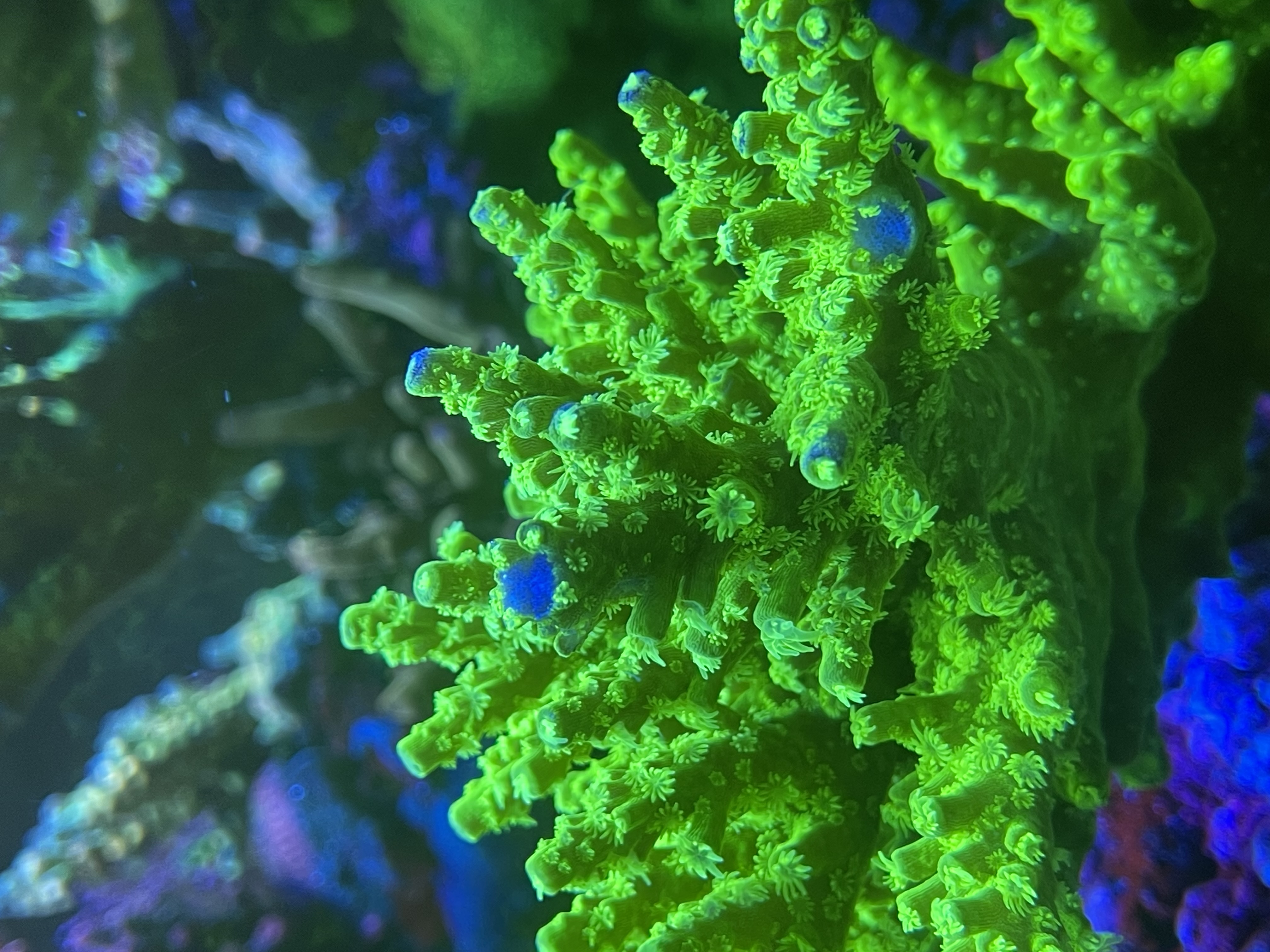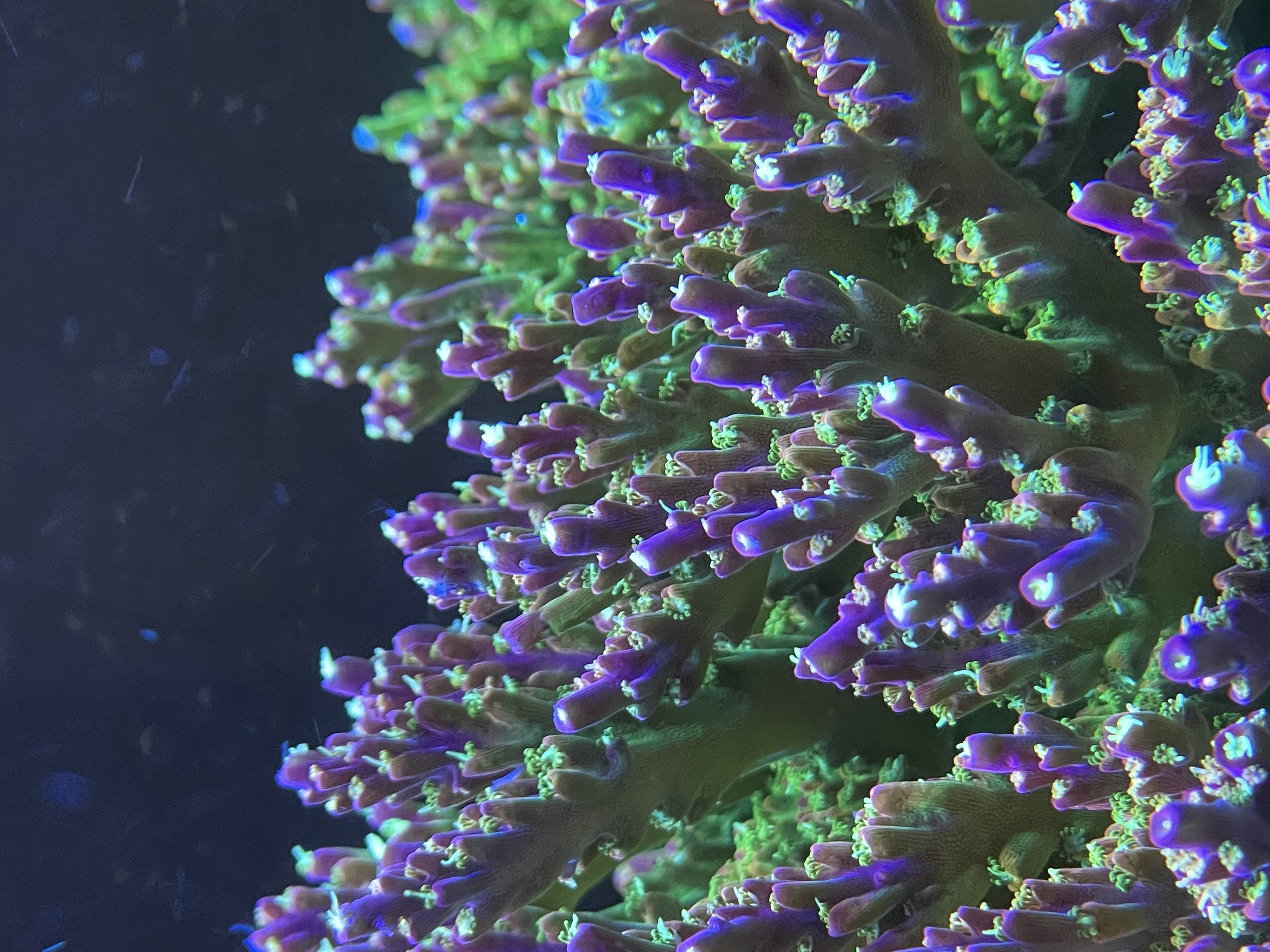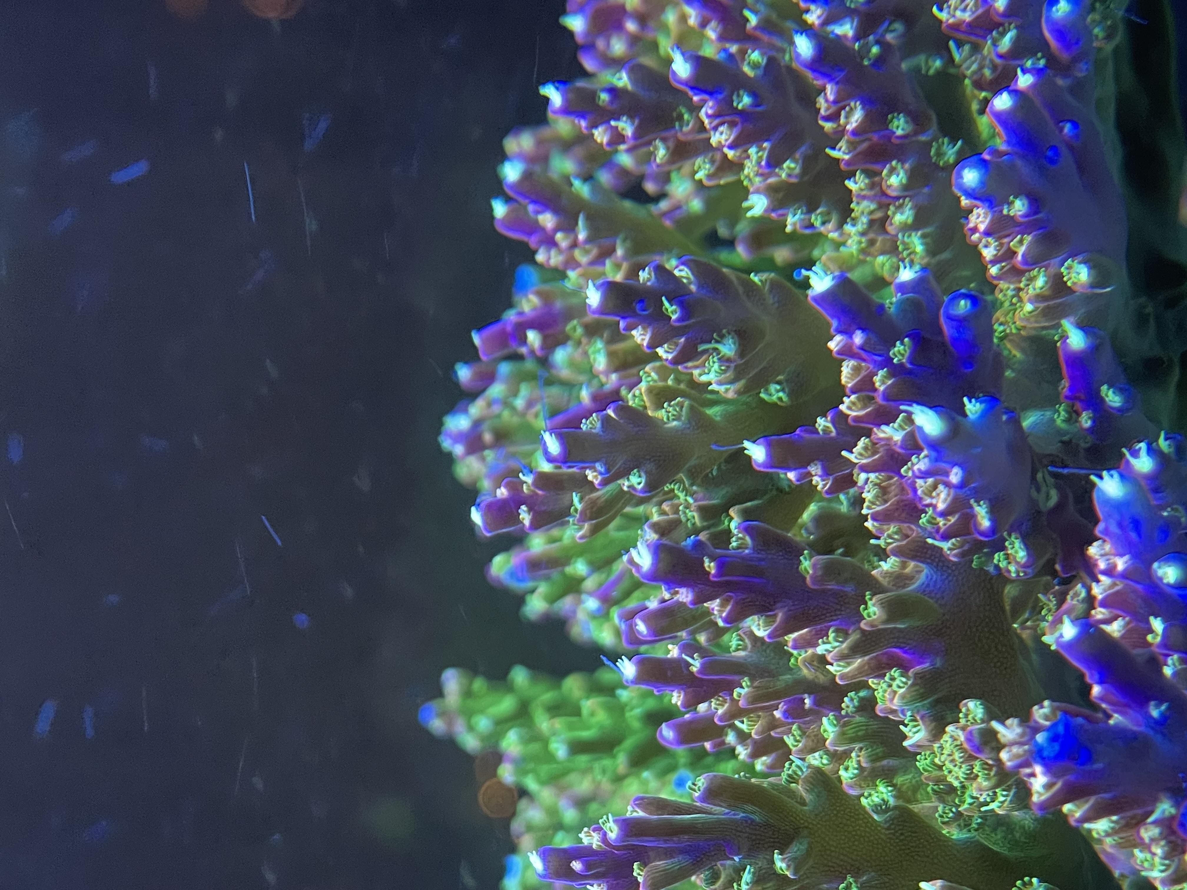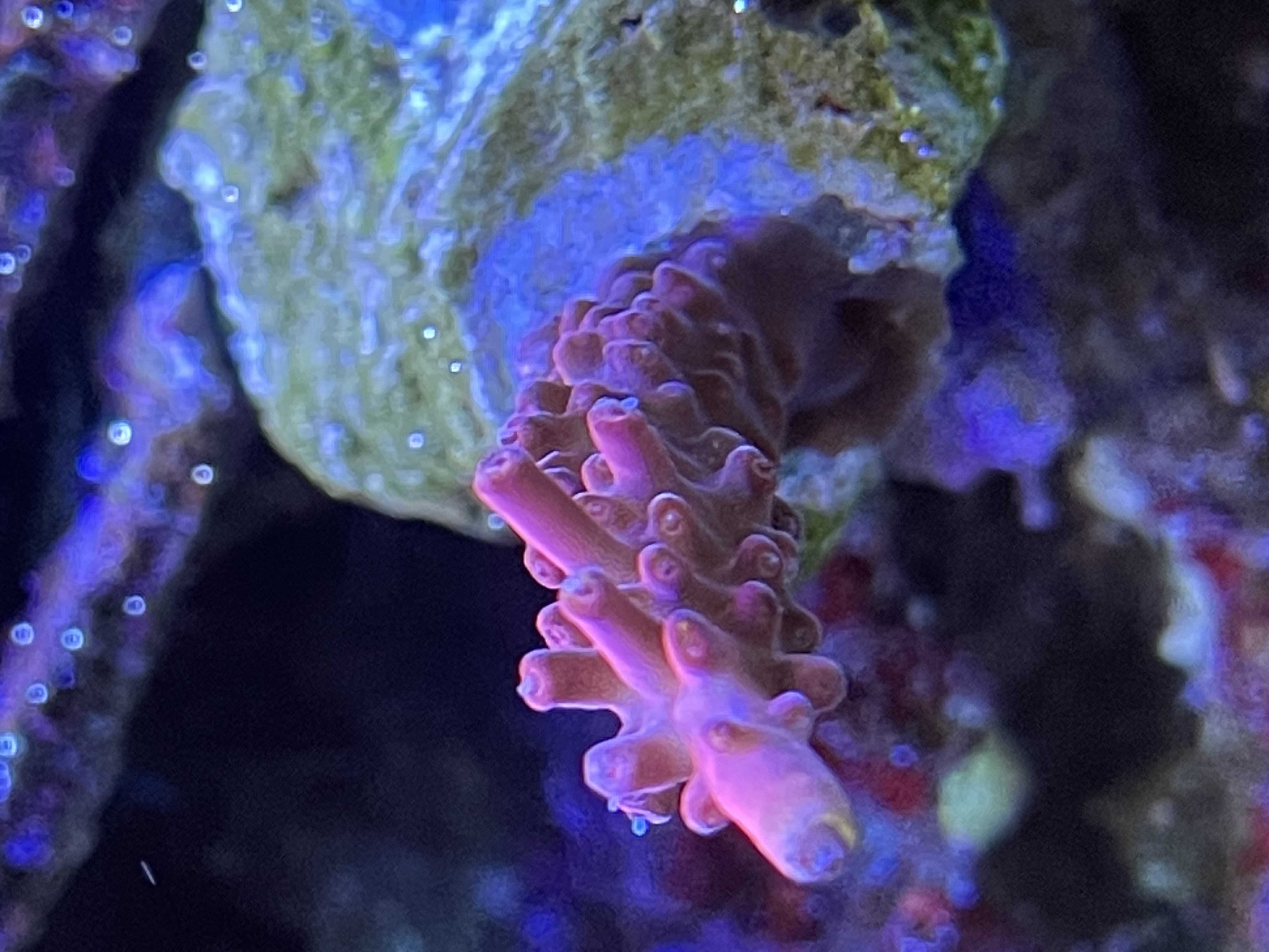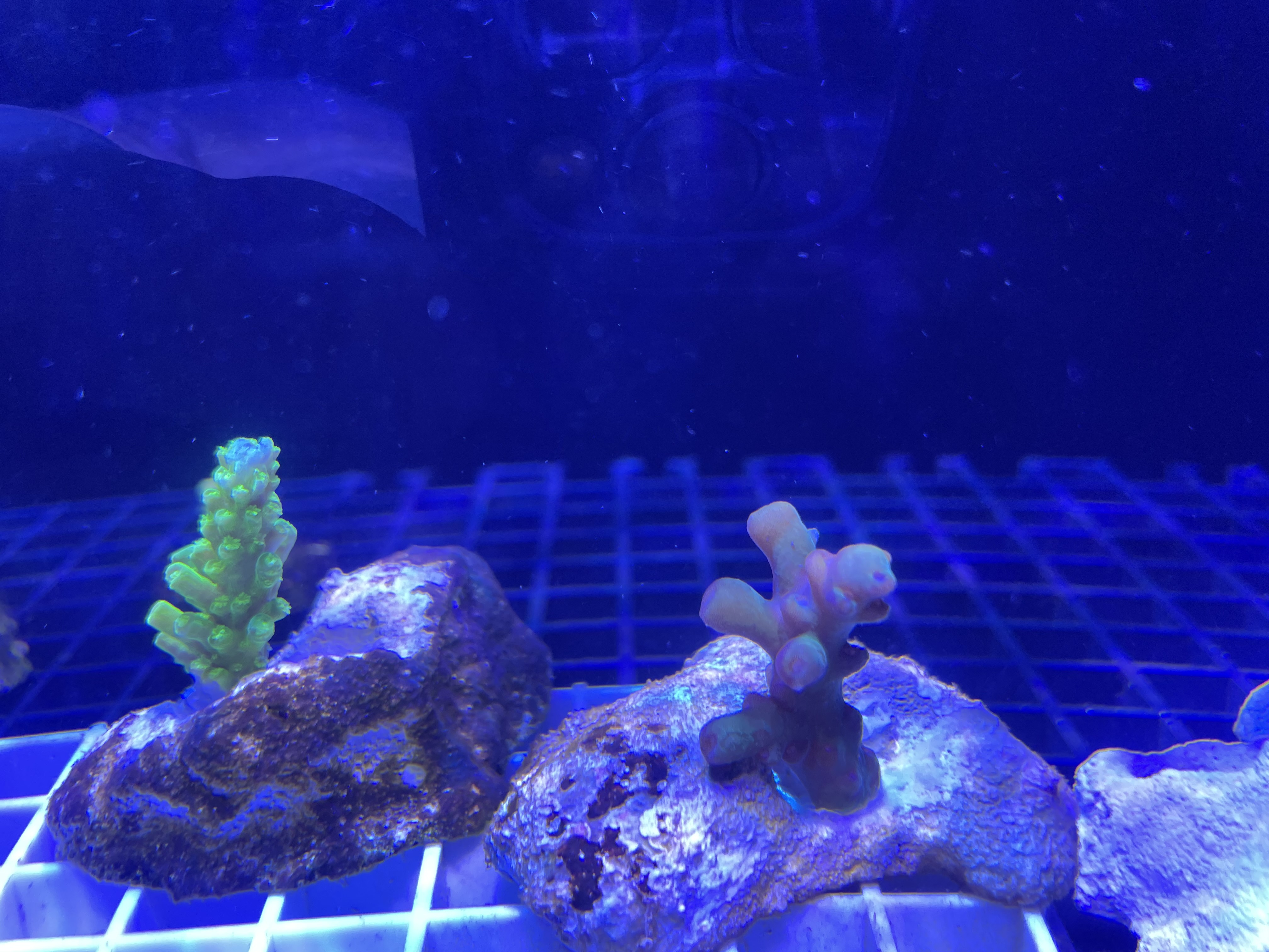 Korallerne som jeg fik leveret i februar, begynder nu at vise sine farver og vækst.