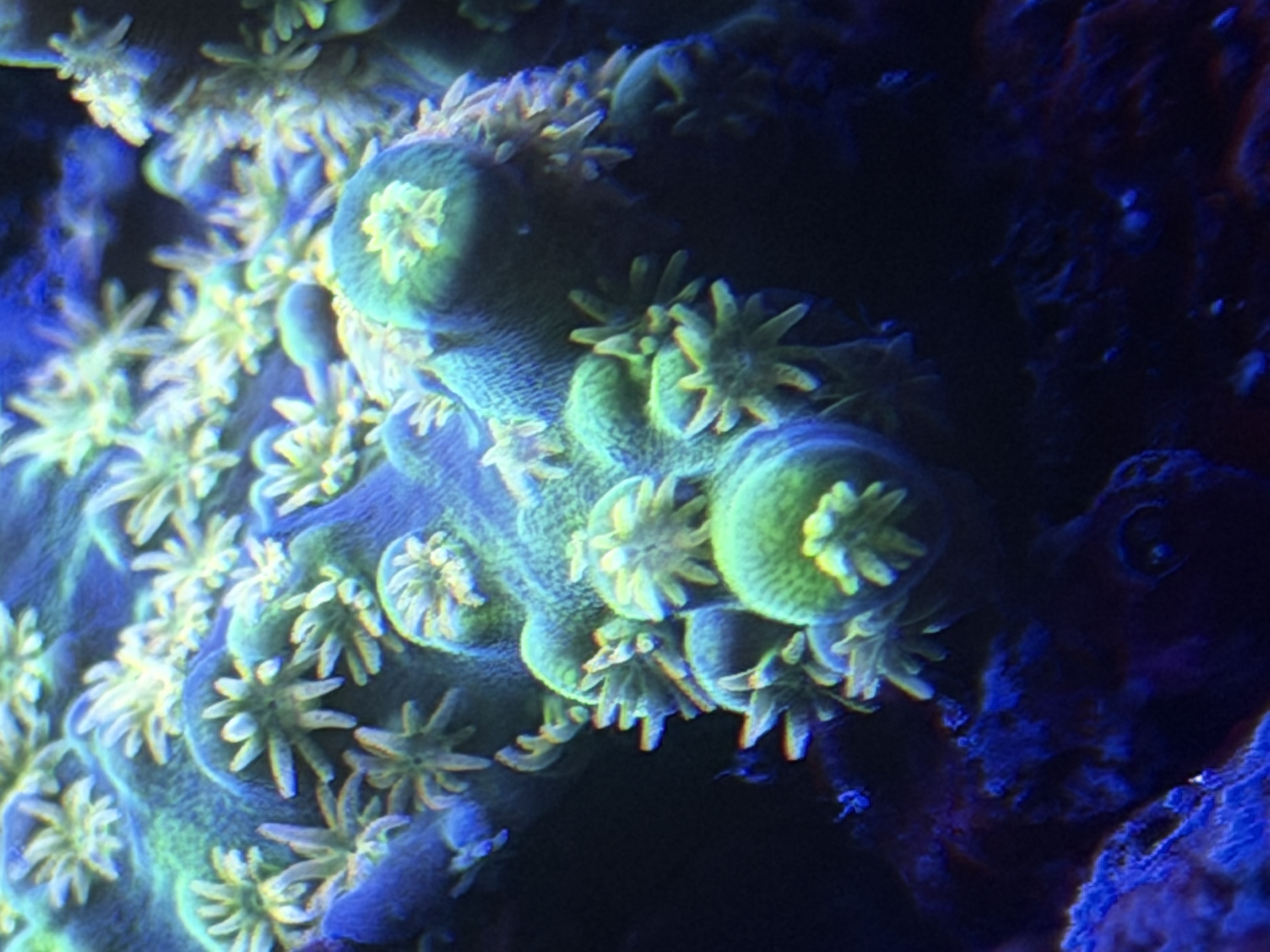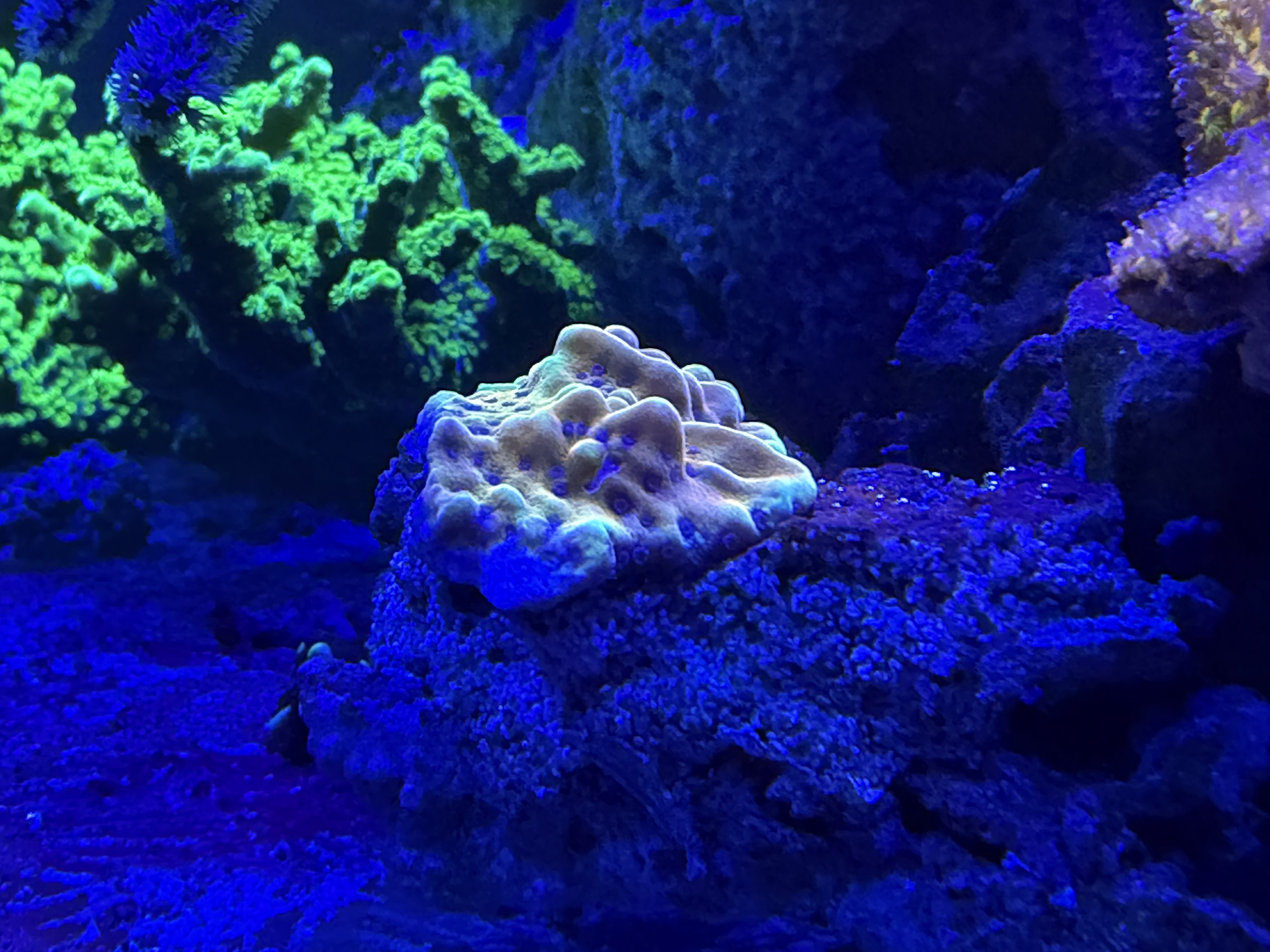Jeg havde denne koral i toppen af forhenværende akvarie, men her på bunden i kun 240 par