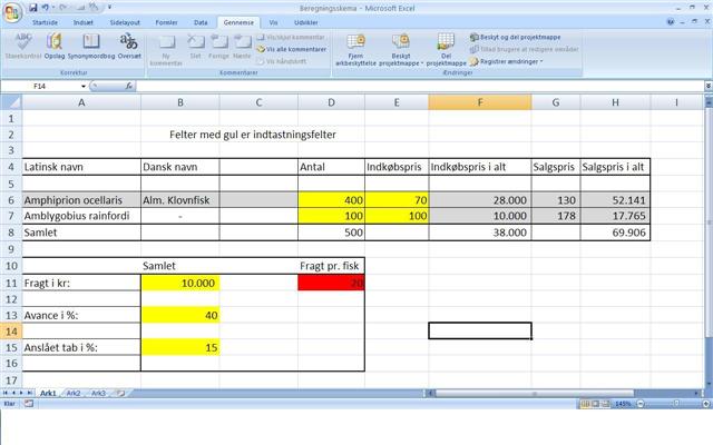 Dette kan selvfølgelig kun bruges hvis man kender fragten og indkøbsprisen pr. fisk/koral