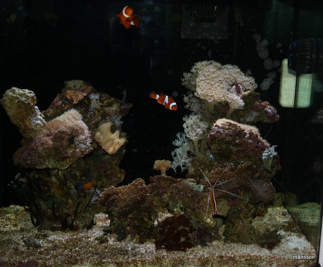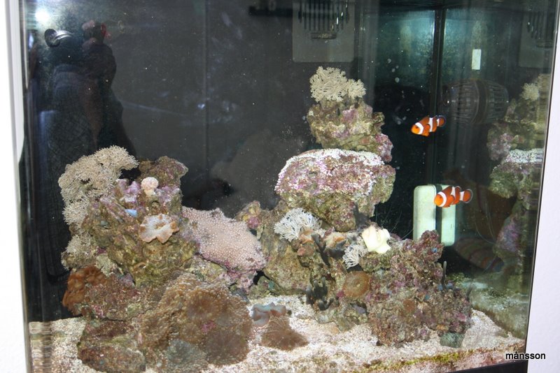 JEg syntes selv alt står super flot og alle polypper, skiver og blødkoraller vokser derudaf... Jeg fik for nogle uger siden et lille fragment montipora, som ikke har det så godt...