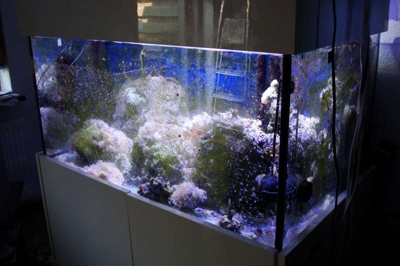 Ikke så godt, da jeg stadigvæk har for høj NO3 (50-100 efter Salifert...) og alle LS er overgroet med Xenia samt skumunderlaget er trykket næsten fladt i siderne da stolpen i midten (imellem lågerne.) ikke er justeret helt op... (Regner med at det er skummets fortjeneste at glasset ikke er revnet - måske det havde holdt alligevel, da det jo er meget tykt glas...)