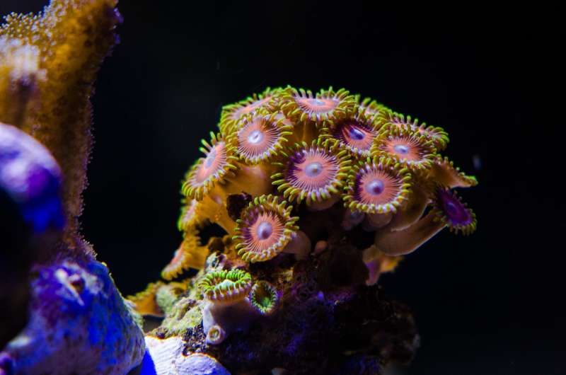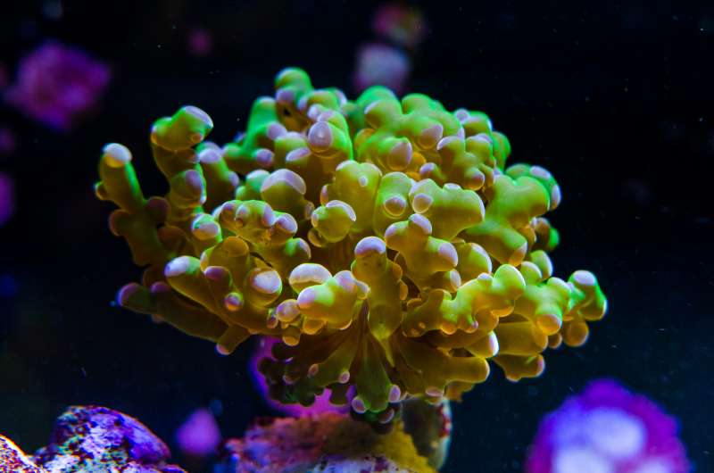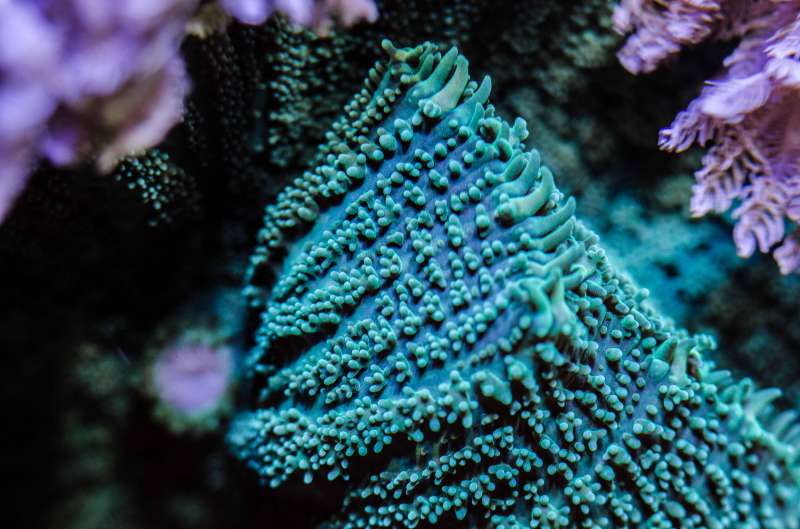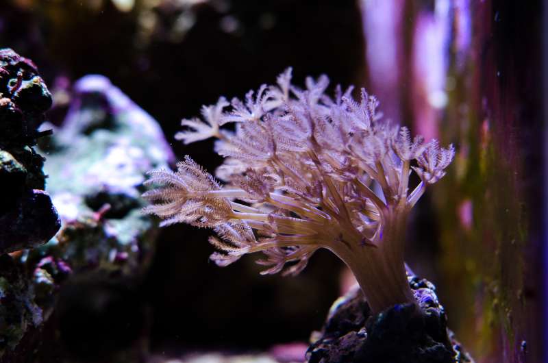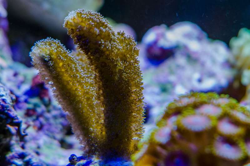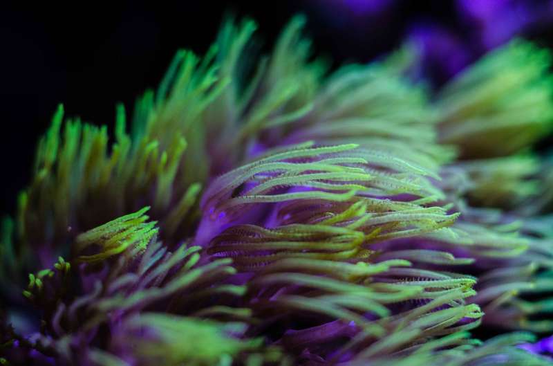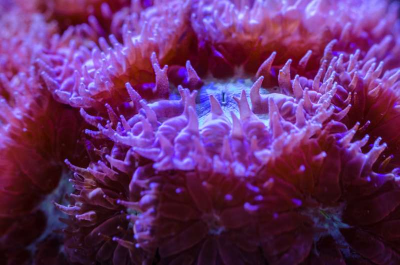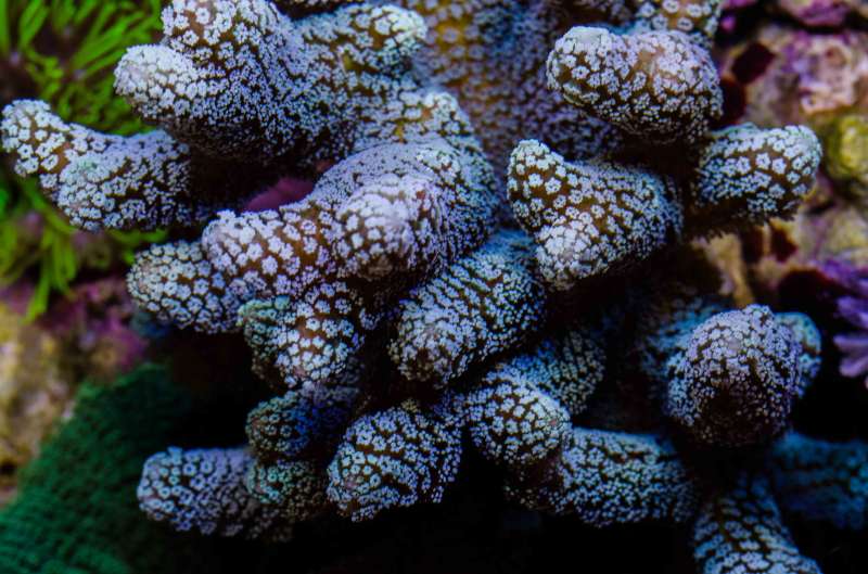 Stylophora pistillata, lilla polypper.