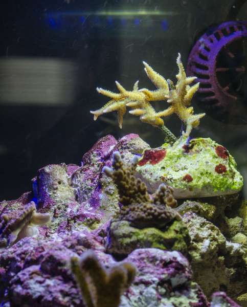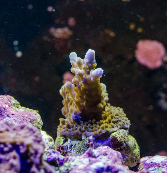 Det kører som godt nok. Må dog nok indse at det lidt mindre nemme koraller, må jeg holde mig fra ind til videre. Den gule Hystrix tror jeg fik et chok over det nye lys jeg har smidt over. I hvert fald begyndte den nogle få dage efter at blive hvid og mistede vævet. Montipora pladen holdte kun en uges tid desværre. De andre koraller ser dog ud til at have det fint, incl. min ny-indkøbte zoa, (Watermelon + et par enkelte med grøn midte på samme sten) pumping xenia og en grøn bubbletip.
