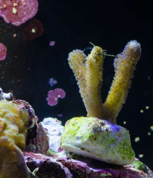 Seriatopora hystrix, gul/grønlig.