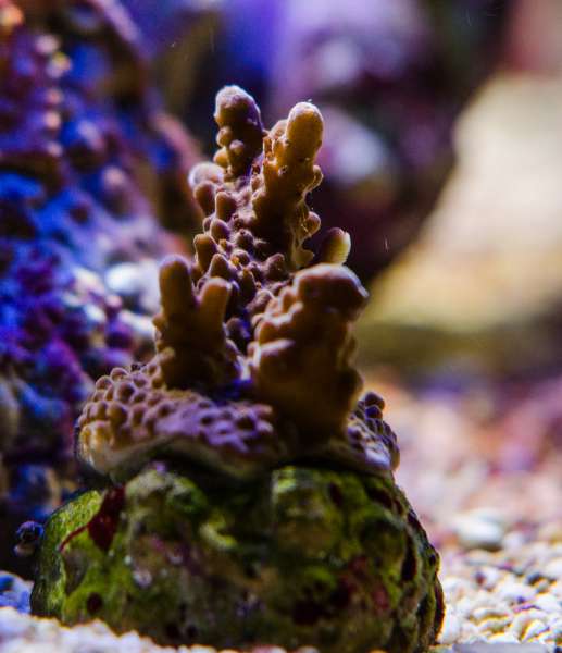 Især min hammer og stylophora har vokset godt de sidste måneder. Stylophora købte jeg som hvid, hvilket den var hos mig den første måned. Nu er den blevet mere baby blå. Om det er godt eller skidt i forhold til vandværdier/lys ved jeg ikke, men kan personligt bedst lide dens farve nu