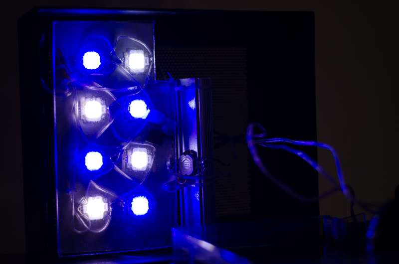 Lampen består af 4 x 10 W Royal Blue, 4 x 10 W 10-20.000K hvide. Det er selvfølgelig noget overkill med 80 W til 23 liter vand, men strømforsyningen kan max levere 36 W, og bliver kørt på ca. 60-75 %. Det giver et virkelig flot lys, nogenlunde som et maxspect razor 16.000K