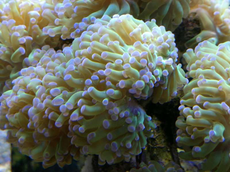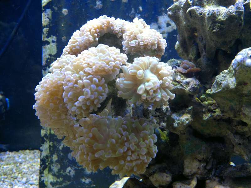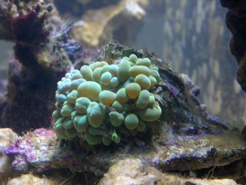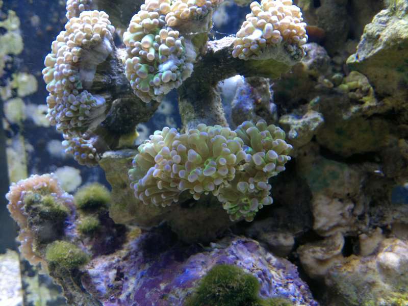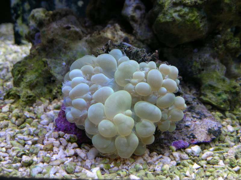 Der er kommet flere grønne trådalger, og dette skyldes næringen fra de nye levende sten. Jeg flytter boblekorallen ned på bunden, da den ikke var tilfreds med dens forrige placering.