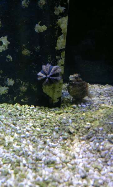 Jeg har også fået et pindsvin, ikke de sædvanlige tux men dette http://www.liveaquaria.com/product/prod ... pcatid=594" onclick="window.open(this.href);return false; (Pincushion Urchin, Hairy) det i øverste højre hjørne. Købt i klovnfisken og har faktisk ikke engang afklimatiseret det![]()