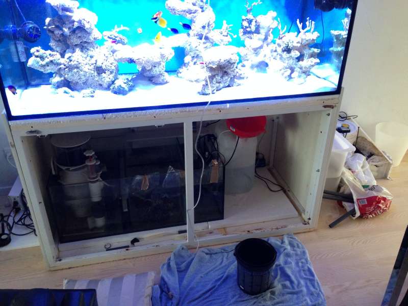 Tænker du på stikkene til lamperne ..? I så fald så ja. De ligger langs væggen bag akvariet . Der er intet i lyskassen eller i skabet.