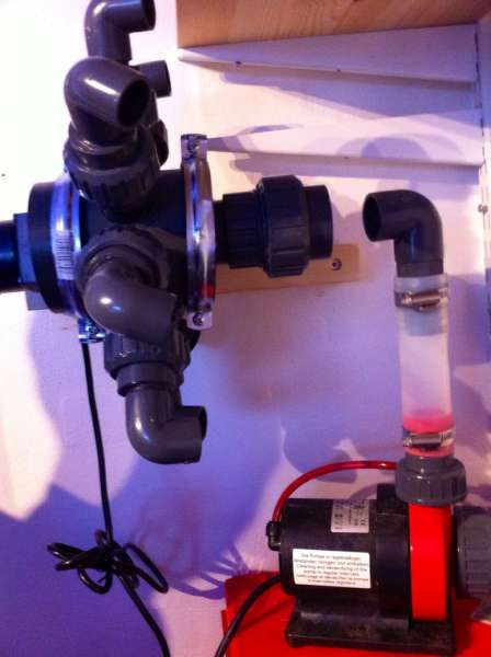 Flemming: Kan kun anbefale denne løsning. Her har vi minimeret larmen i stuen helt - eneste der kan høres svagt er rislen fra overløbet, så det er virkelig en forbedring i forhold til da vi havde interne pumper i akvariet. Og flowet er også blevet væsentlig bedre end vi havde turde håbe på. SPS kan ikke stå overalt, men vi har lavet stensætningen så der hvor de skal stå er der meget flow.