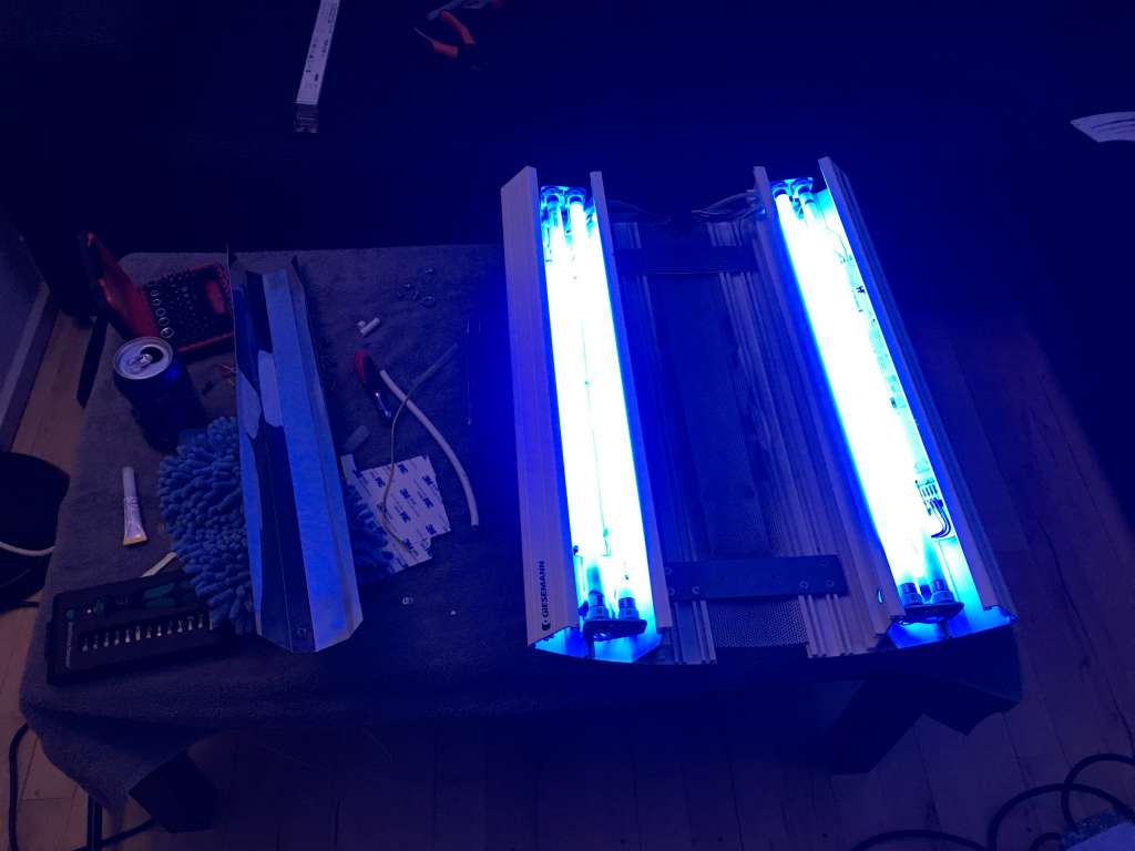 Den fik lige en velfortjent rengøring, pudsning af T5 reflektorerne, samt udskift af ballaster til dæmpbare.