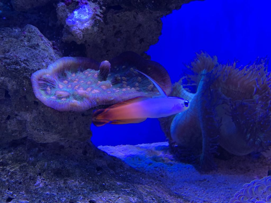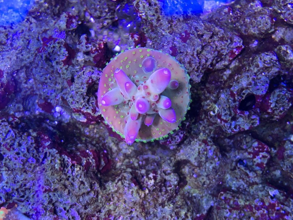 Har måtte flytte min Sour Apple Favia. Da mine acropora er begyndt at skygge for den , så den ikke fik optimalt lys, i den forbindelse fik jeg lige taget et billed af den under blåt lys, uden filter