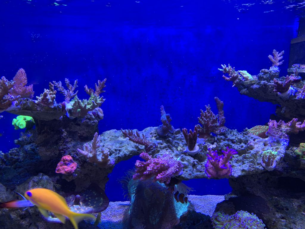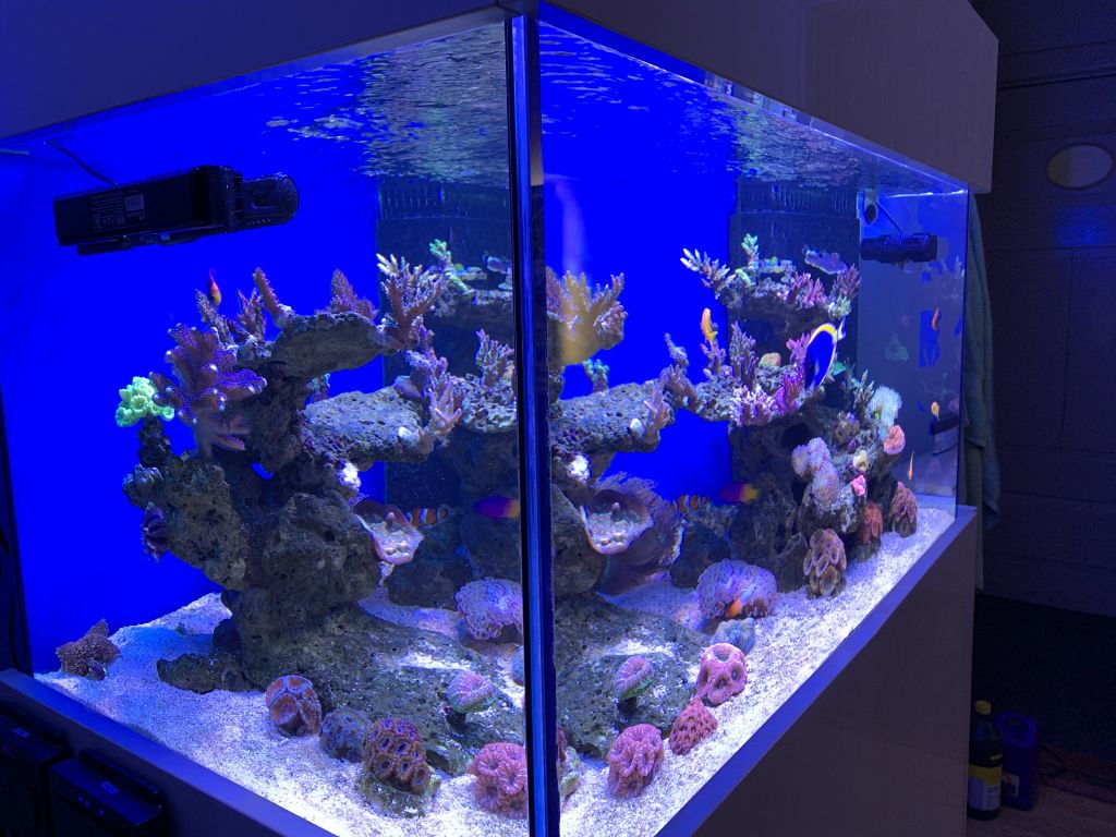 Så har akvariet kørt i 4 mdr, der er god vækst og farver på korallerne, og fiskene er godt fede.