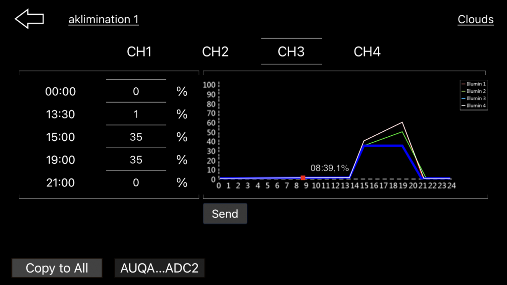 cirkulation. Og en hqi lampe med en pære på 6500 k (pisgult vand)