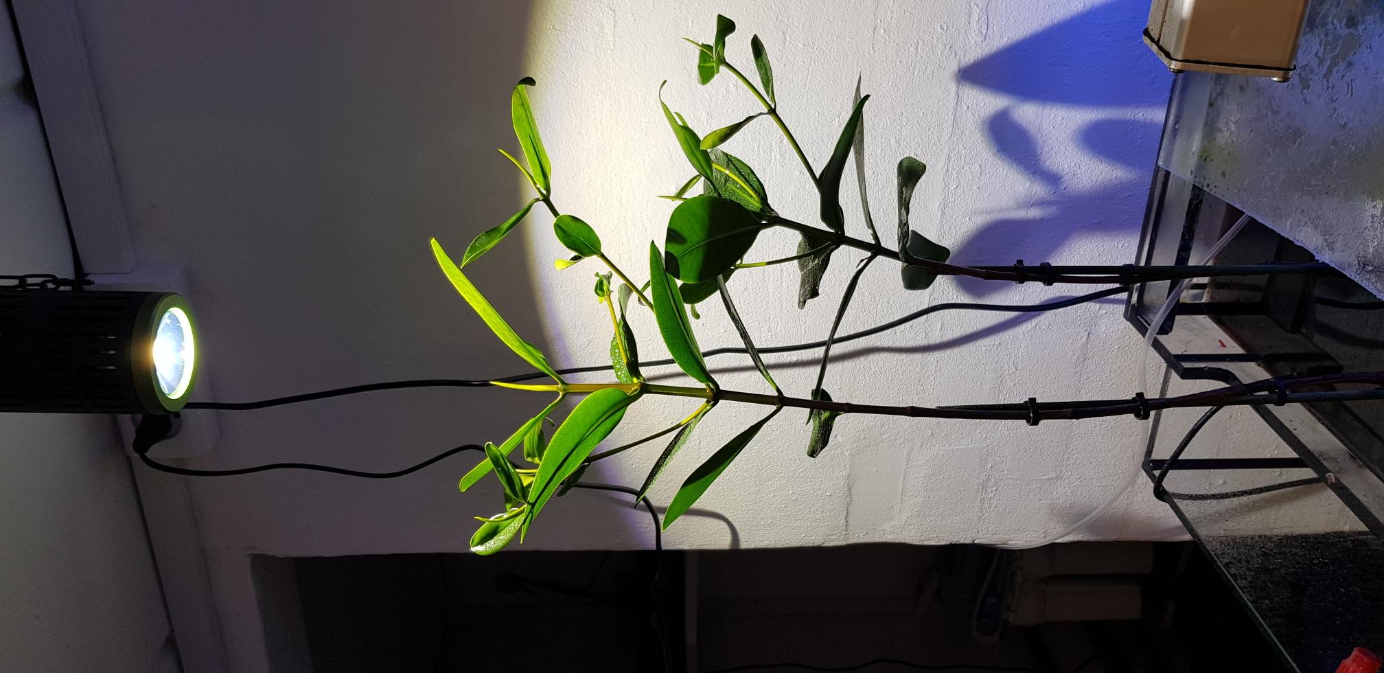 Jeg havde mine I en trådkurv (en man bruger til opvask af bestik i en opvasker) Jeg satte den ned i kurven i den potte den kom i. Jeg satte den, så det kun var pottedelen der var under vand. Brugte bare et par tunze magneter til at fiksere den. Det meste af stammen og der hvor bladene kommer, var oven vands. Bladene tror jeg ikke holder til at være under vand. Jeg rykkede den så nedad mod bunden i takt med at den voksede. Efter nogen tid, var stammen så høj/lang, så jeg kunne sætte den i den trådkurv den står i på bunden.ttkthomsen skrev: tirs 4. nov 2025 20:07 Jeg håber det er ok men lige her et par billeder af min som er plantet i sand i en kop. Det ser ud til at der er et blad på vej. Men overvejer om jeg burde lave huller i plastikkoppen?