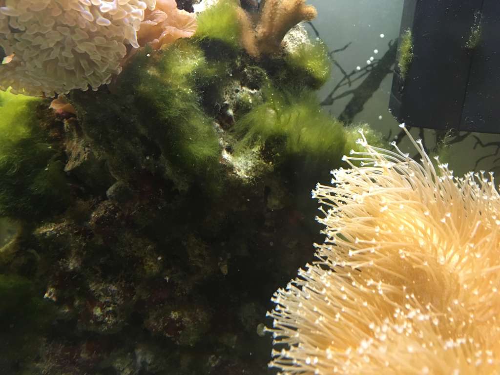 Hej! Jeg døjer meget med et alge problem/brun sandbund. Bag akvariet er sandet hvidt og pænt, men foran er problemet. Hvis jeg fjerner algerne ved at suge det ud eller røre i sandet, så går der 1 dag også er de tilbage og min sandbund ser sjusket ud. Jeg har 3 Nas. Snegle, 1 sandspiser goby, som ikke spiser sand hvor der er alger. Har massere af flow, og er bange for at rive mine euphillia’er i stykker hvis jeg sætter det højere op. Jeg kører Kessil 360 med 70% styrke. Har et IM 40 akvarie (150 liter).