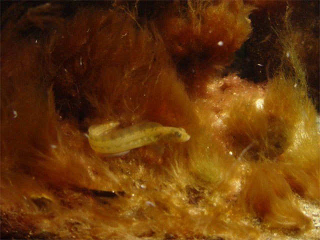 Der er ikke så mange fisk i akvariet for tiden, kun en savgylte, en sort kutling og en tangspræl og to tangnåle.