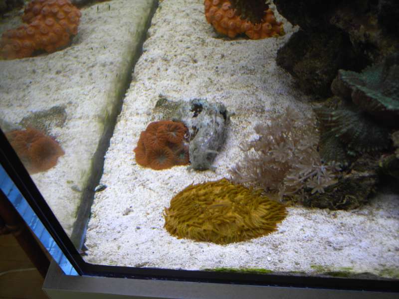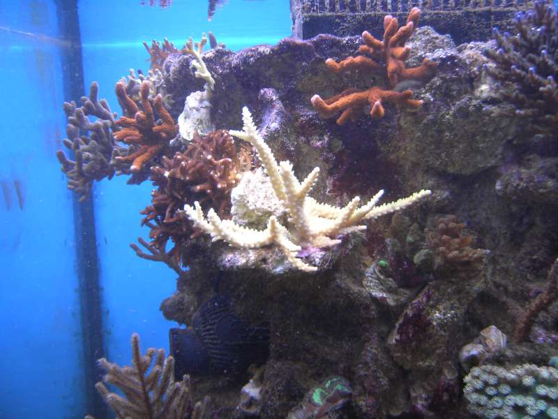 Vi døjer desværre stadig en del med slimalger, men ellers står det hele rigtigt godt pånær den ene røde montipora som langsomt smider vævet. Aner ikke hvorfor... Alt det andet trives fint... Go figure...