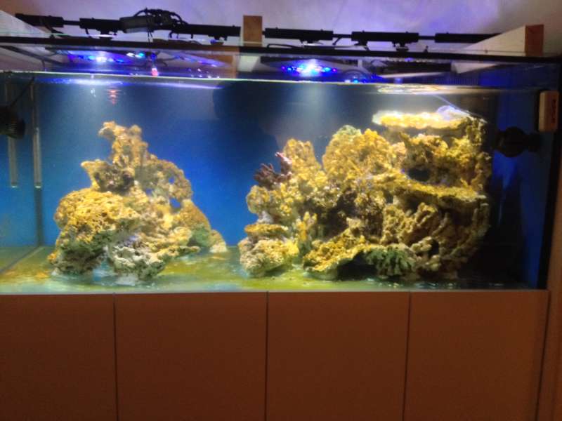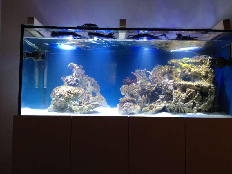 Så blev fisk og koraller flyttet over, det er nok lige det tidligste, men da jeg skal bruge det forrige akvarium som sump til det nye, blev det sådan.