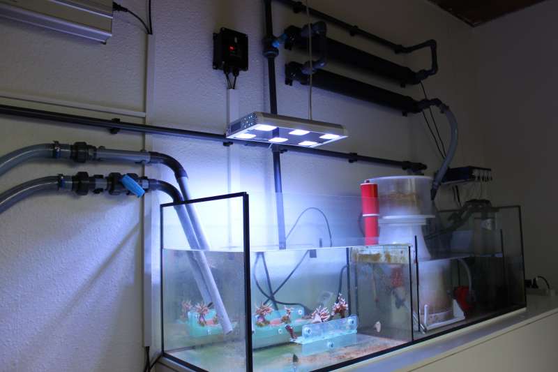 Kl 16 begynder de 4 inderste rør så at blusse op. Kører dem kun 2 timer om dagen. Ellers fremgår det tydeligt at korallerne får for meget.