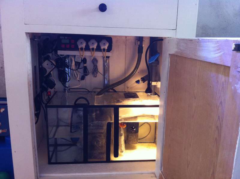 Okay, spændende. Kan godt se at et ugentligt vandskift ikke vil være stabilt nok i et proppet akvarium.Jones skrev:På billederne kan I se de nye klovne i akvariet og de gamle i sumpen. Jeg vil både køre med vandskift og dosering. Sagen er den at jeg vil proppe akvariet med koraller. Jeg er vild med stylophora og vil gerne have lavet en pæn samling, men det kræver stabilitet. Med tiden vil jeg også gerne have en Tridacna, men igen, det kræver stabilitet. ATS og DSB skyldes min egen interesse. Jeg kan godt lide at bygge tingene selv og så synes jeg at det er fedt når der kommer flere naturlige processer i spil.