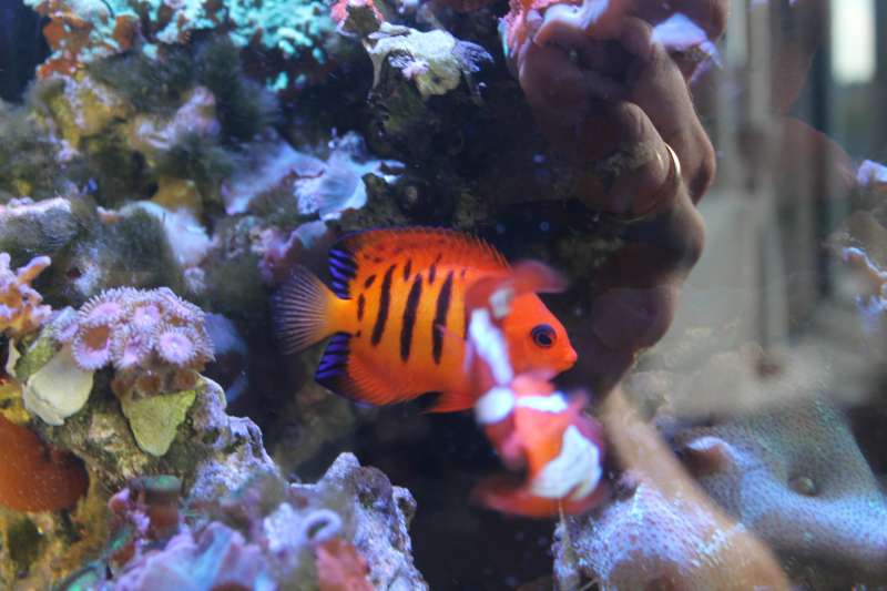 Døjer fortsat med alger, men de er så småt på retur. Sommeren har været lidt hård ved akvariet og så er det jo heller ikke så gammelt og indkørt endnu. Kan se at algerne primært er på de sten, jeg havde med fra mit gamle nano. Måske er de fyldt med lort efterhånden. Jeg har bestilt klips på eBay, så jeg kan få noget rigtigt glas over akvariet. Det kommer fårhåbentligt om en måneds tid. Indtil da må jeg klare mig med en flot plexiplade :D