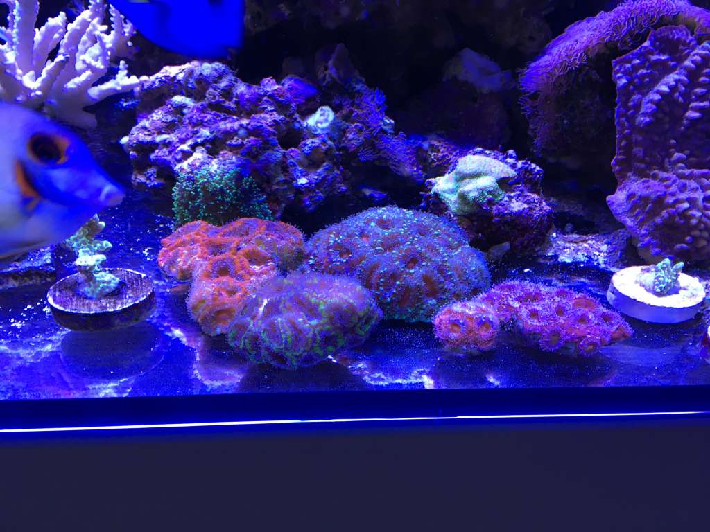 Vi tæller efterhånden 14 forskellige acroporaere og 18 montiporaer. Og der til alt det løse . Det vel ok på 260 liter
