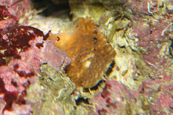 Denne koral er kommet frem på to sten. Det vokser meget langsomt og er på nuværende tidspunkt ikke meget størrer end en fem-krone. Det ser ud til at der er nogle meget små polypper på den.