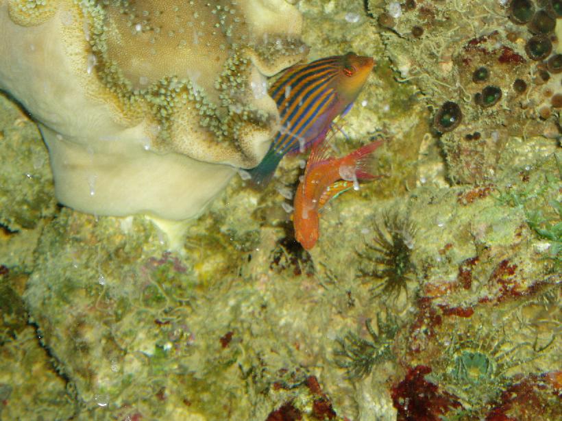Fine fisk du har fået dig Lars :GO Mon ikke det med den 6 stribet gylte aftager med tiden så du kan beholde dem begge. De gange jeg har haft problemer med min er det aftaget efter en lille uges tid, men ellers kan jeg godt forstå hvorfor du har valgt at beholde din Paracheilinus filamentosus.