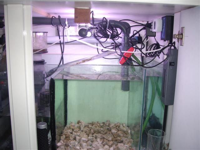 Jeg har gennem de sidste 2½ år haft nedennævnte 860 l akvarie, men har lige lukket det helt ned og renset alle sten mv. grundet diverse alger og andre udyr som gjorde, at jeg ikke har kunne få det til at fungere ordentligt gennem de sidste 8 måneder. Thomas fra klovnfisken har været en stor hjælp, men vi så ikke anden muilghed, end at lukke det ned og starte forfra. :G