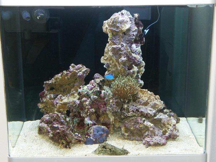 Men anbefalingen fra Mads i Klovnfisken (hvor jeg købte akvarie og sten) lød på 10kg. Han påstod, at det ikke var vægten men derimod "kvaliteten" (hvilket jeg forstår som porøsitet) af stenene, der var vigtig. Desuden vil der tilgå flere sten hvergang der købes koraller. Han fortalte endvidere, at han kun havde 60 kg LS i sit eget 1400L akvarie (sådan som husker jeg det).