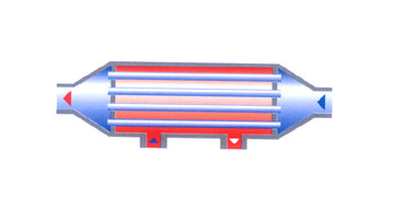 fandt lige en tegning af en varmeveksler... ved ikke så meget om dem, men det kolde vand skal jo selvfølgelig køle det varme ned uden at vandet fra de to kredsløb kommer i kontakt med hinanden :)