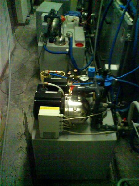 Jeg kan da nappe nogle billeder af anlægget .. Det laver vand til en Trykmaskine samt luftbefugtning. Det til luftbefugtningen bliver så kørt gennem 10 og 1 my filter inden det bruges, for ikke at stoppe dyserne. Det til Trykmaskinen pumpes videre over i et extra resavoir (måske stavet rigtigt) Men jeg tager self vandet direkte fra anlægget, så det er "frisk-presset"