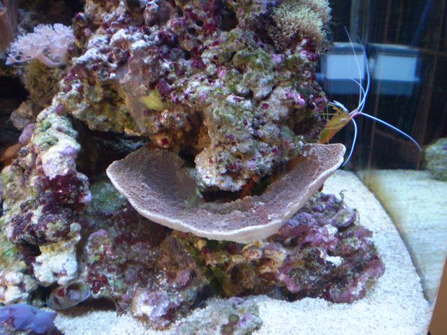 Selvom en Montipora ikke er blandt de mest lyskrævende, tvivler jeg nu på at 48 W er nok til dem. I bedste fald bliver den blot brun og kedelig. Og det sted du har sat der ser rigtigt godt ud, men den står for langt ned i vandet til at få noget ud af den smule lys der er.