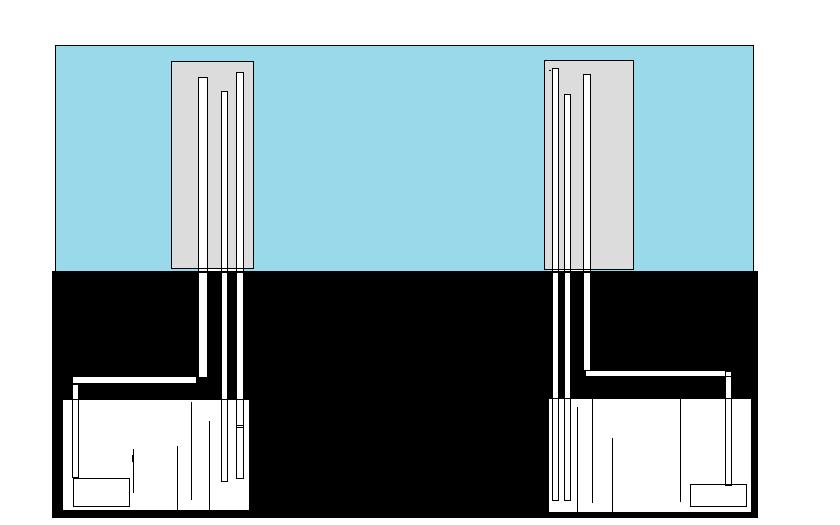 Jeg har lavet en tegning som kræver 6 huller ( i kan nøjes med 3 ) og føre de 2 stk. sumpe sammen via rør.