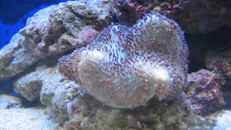 Din "mushroom" er sikkert glad i smaa snasket vand. Og Green Star Polypper kan man ikke slaa ihjeld (naesten sandt).