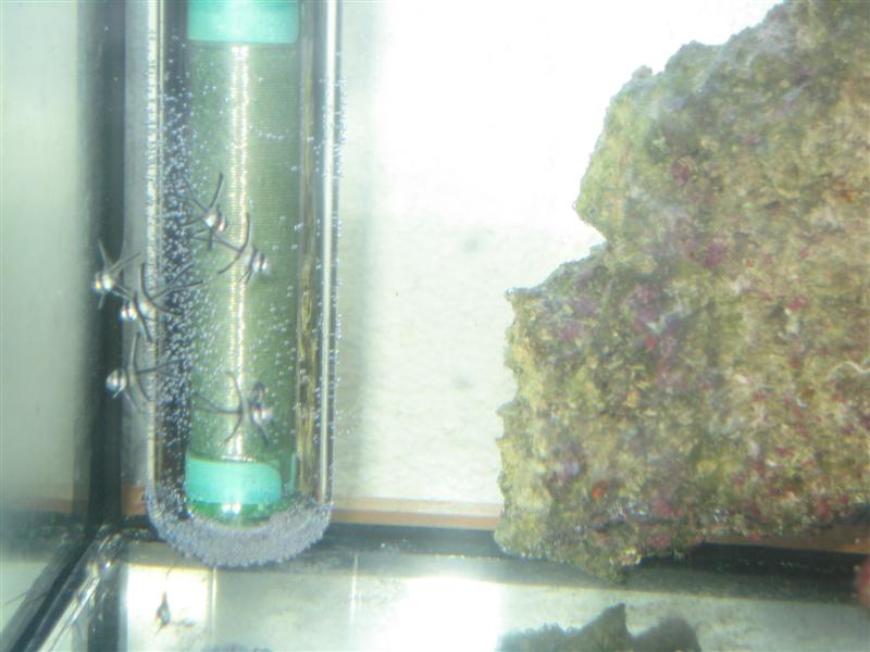 Jeg regner lidt med at sætte noget blåt filtersvamp rundt om indsugningen på skummeren da jeg er bange for om ungerne vil blive suget ind ? (Hvis der er nogen der har gode råd til at indstille skummeren er de meget velkomne, jeg syntes at der kommer mange bobbler i akvariet...)