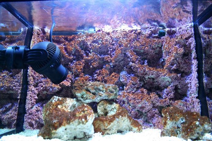 Det bliver super med noget ekstra cirkulation, kan se at der er "døde" områder med vandcirkulation. Tunze nano pumpen kommer om i sumpen for at give cirkulation i de levende sten jeg har deromme.