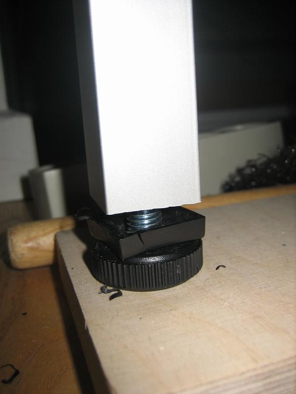 Ok - viste faktisk ikke at bør stille på skruerne med vægt på - Men det kan jeg heldigvis udelukke som fejlkilde da jeg har løftet benet et par mm over gulvet hver gang jeg har skruet på det..