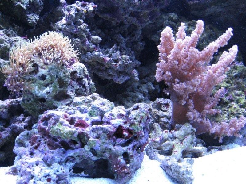 Jeg bruger osmosevand til at fylde baljen med og skifter vandet ca. 10 % om ugen (udover fordampning på omkring 18 liter om ugen). Nitrit og Ammoniak har hele tiden været stortset på 0, PH og KH stabilt - men nitrat har ligget på ca. 50 og er nu faldet til 30. Jeg har ikke haft mega algeboom, men det er kommet lidt efter lidt på hver sten.