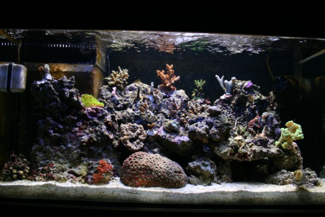 jeg har ingen fisk i akvariet og jeg ved heller ik om jeg vil have nogen i, kan ikke helt bestemme mig. der er dog en enkelt Kamel reje (Rhynchocinetes durbanensis) 1 ( Calcinus sp ) 2 turbo snegle og en enkelt Acropora krabbe. det er hvad der er af liv i akvariet udover alle korallerne