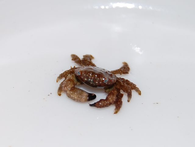 Havde den med ned til Carsten i DecOcean næste dag. Han sagde at regel nr. 1 er at hvis krabben har hår, skal den ud og 'lege' på motorvejen. Han gav den til en muræne - hæ hæ