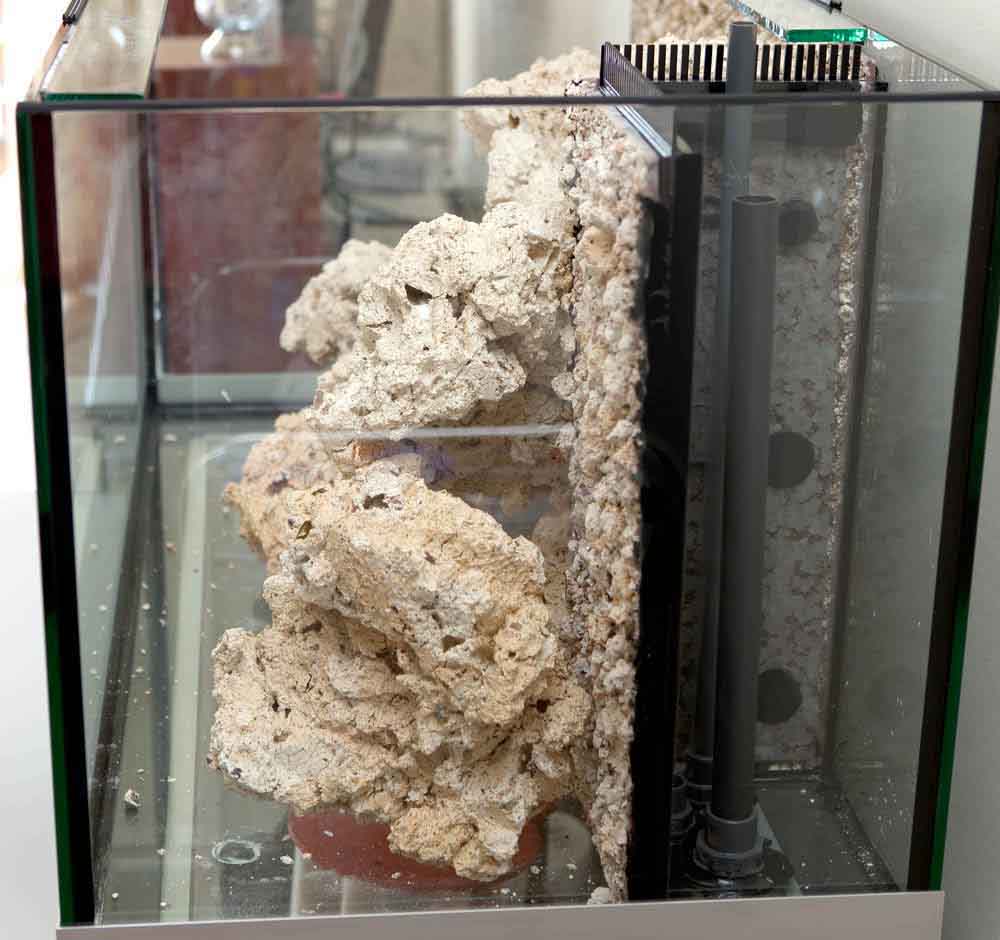 Det nye akvarie får keramikbaggrund samt kunstige sten af fabrikatet Aquaroche http://www.aquaroche.fr/. De bliver podet med nogle sten fra det gamle akvarium.
