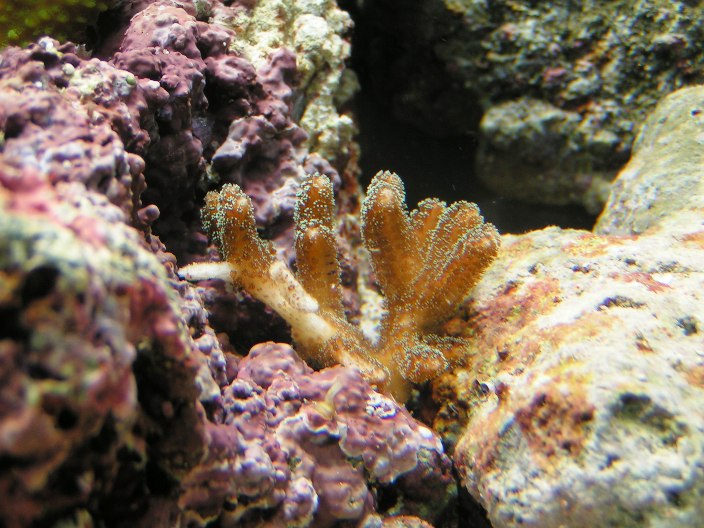 sender lange brændende tråde ud på bunden for at finde føde. Så den skal ha' mindst 15-20cm afstand til nærmeste nabo koral/skive, eller risikerer de at blive svitset og dø.